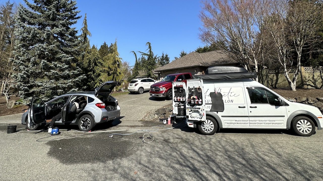 Our mobile auto detailing rigs are equipped with on-board power and water for a hassle-free experience!